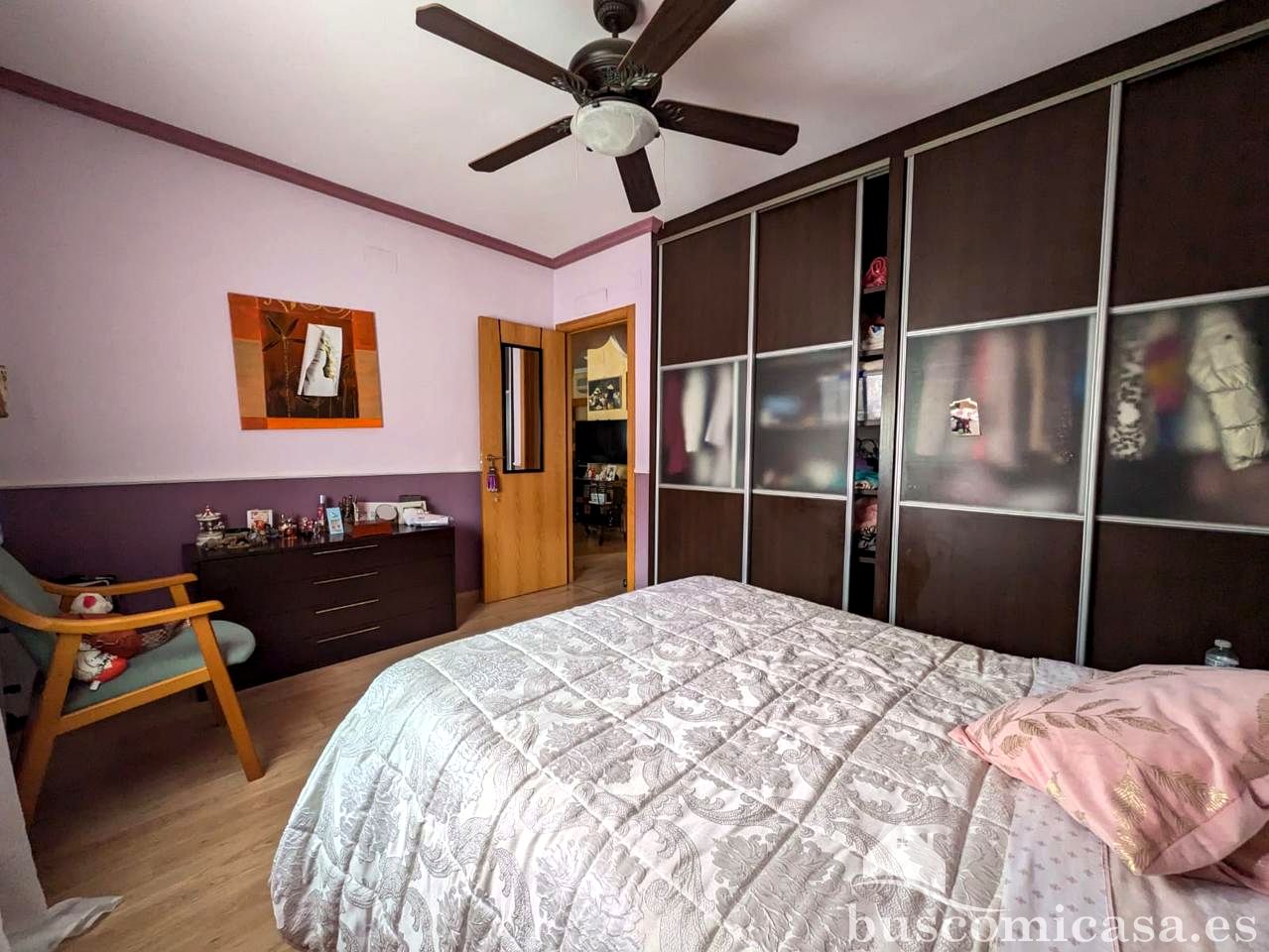 Su diseño incluye un salón con suelo de tarima y pintura lisa, además de un balcón y una terraza que ofrecen espacios perfectos para disfrutar del buen tiempo. La cocina, completamente amueblada y equipada, facilita el día a día, mientras que los armarios empotrados en las habitaciones proporcionan un amplio almacenamiento.
