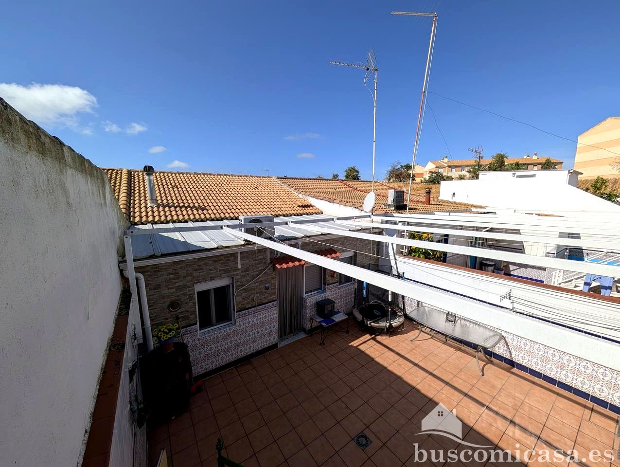 En el exterior, podrás disfrutar de un gran patio interior con un espacio para almacenamiento y un pozo propio con bomba eléctrica, así como una terraza ideal para actividades al aire libre. También dispone de un trastero para mayor comodidad.