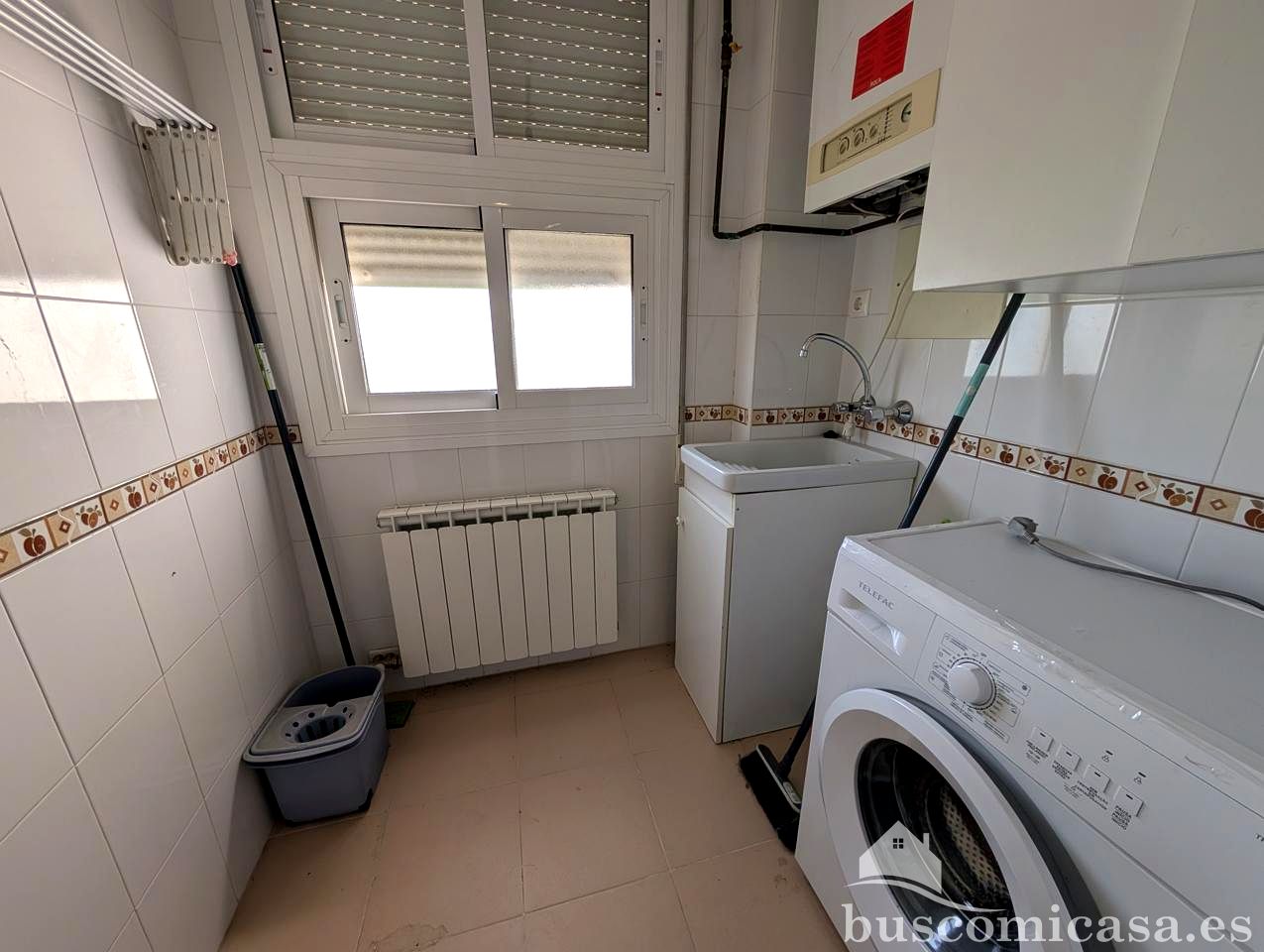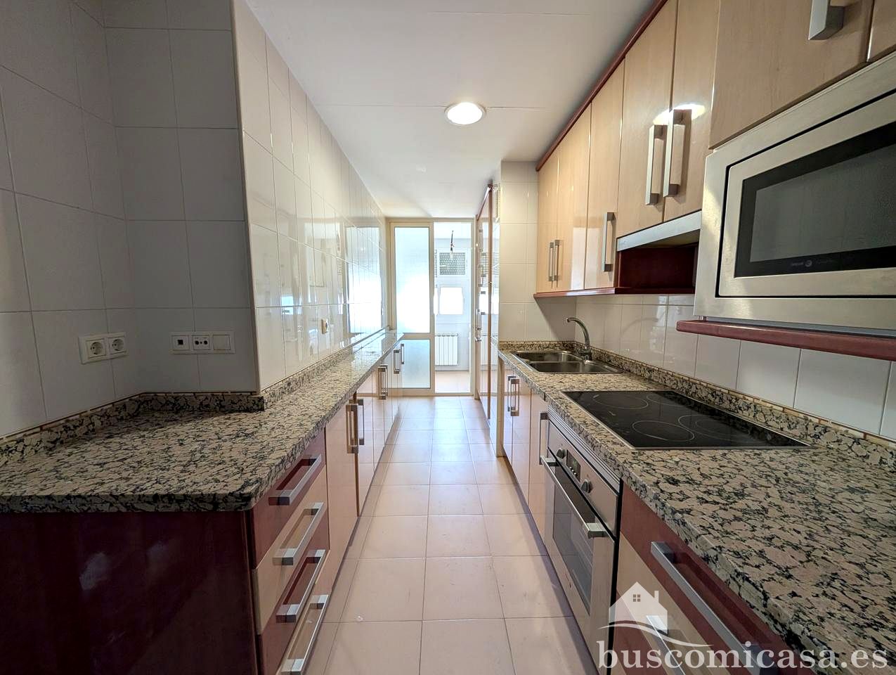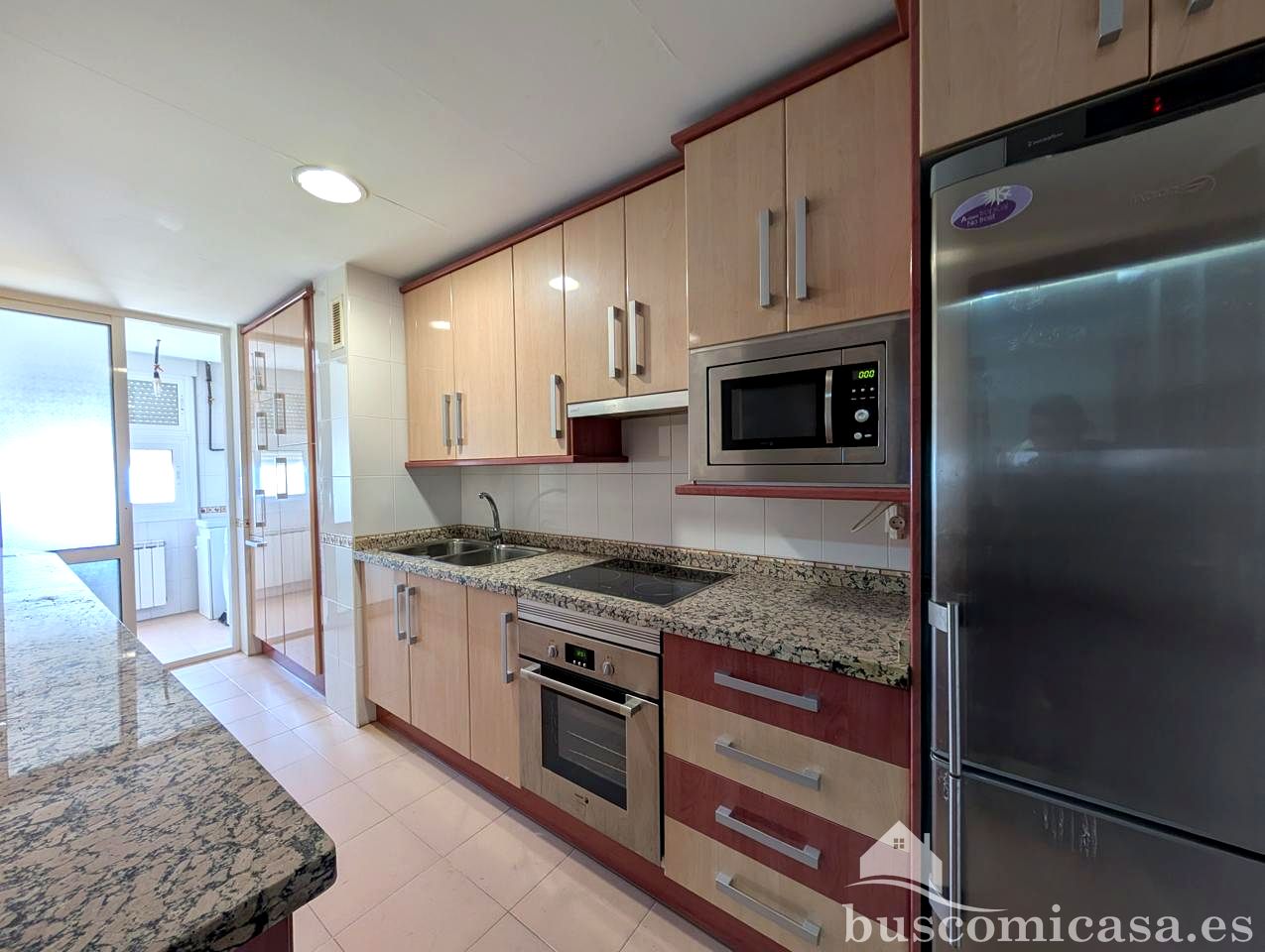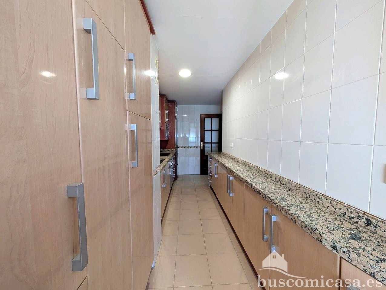 La cocina, completamente amueblada, ofrece un espacio práctico y listo para su uso, complementado por un lavadero para mayor comodidad.